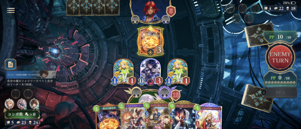 この時はこんな構築。後ほどアルフヘイム1枚をコウ&ヨウに変えております。ユエル&ソシエクレスト後の奥義カタリナがつえーんだこれ。