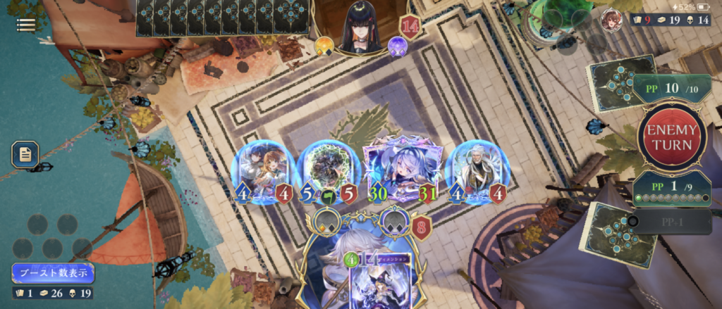 まず進化エルフ。序盤のテンポは最高、回復リソースももりもり。しかしサンダルフォンしか打点が無い。クピタンは解放奥義でやっと3点。きつい。リノ入れたら変わった?