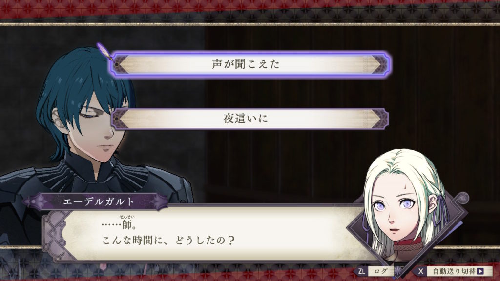 前回この場面で来たのディミトリだったはずで。もしかして好感度高い異性キャラとかが来るのかな。