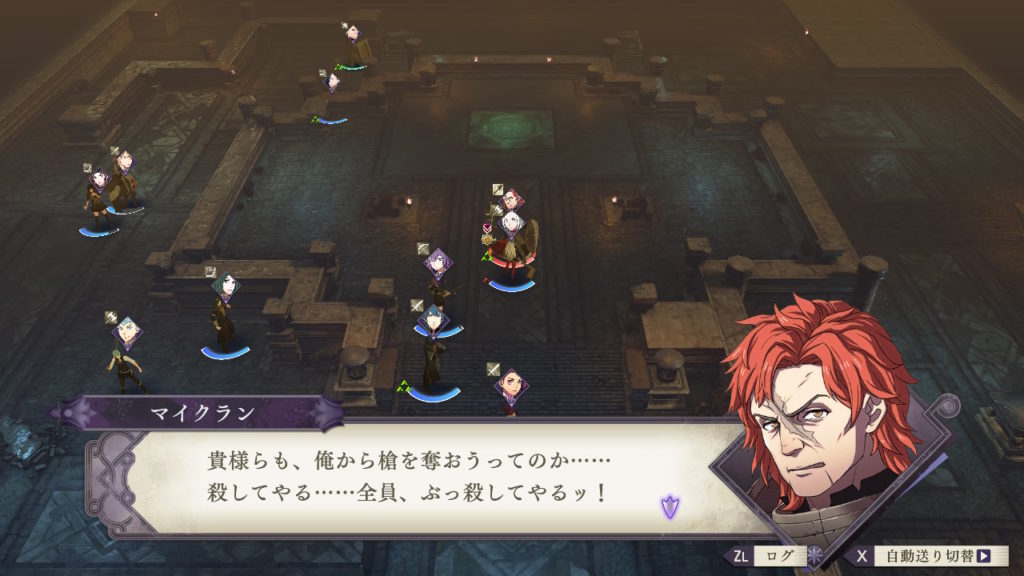 青獅子キャラ殺すの辛いか?と思ったけど、気持ちはかなり黒鷲になっていてそこまででもなく、致し方無しの気持ちで。このマップではドゥドゥーが紋章石配ったのに怒ってたのが印象的だった、優しき王よ。