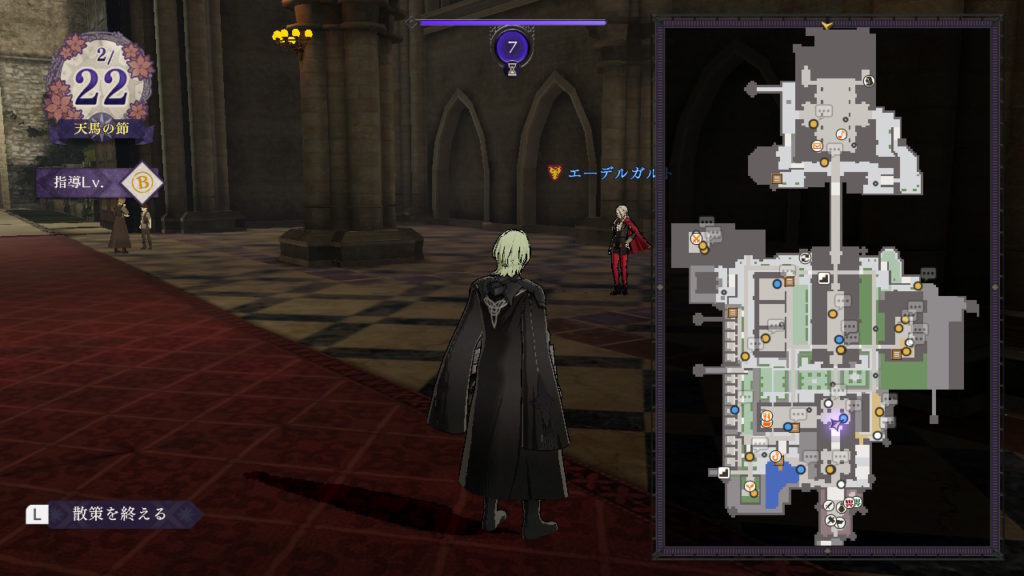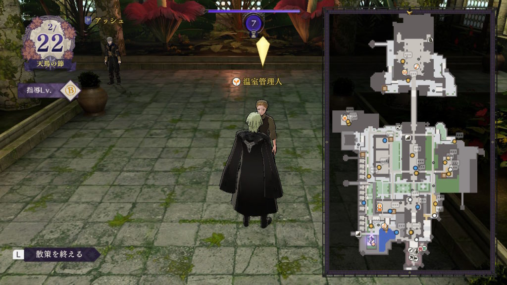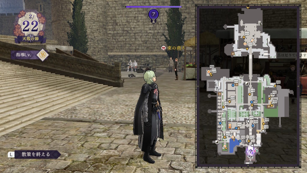 まずこの黒鷲編での散策、吹き出しアイコンは前回すべて潰し回ったので5年後に行くまでは台詞変わってないだろうなと思って基本スルー。気まぐれで通過した黒鷲キャラ数人に話しかけていただけだった。