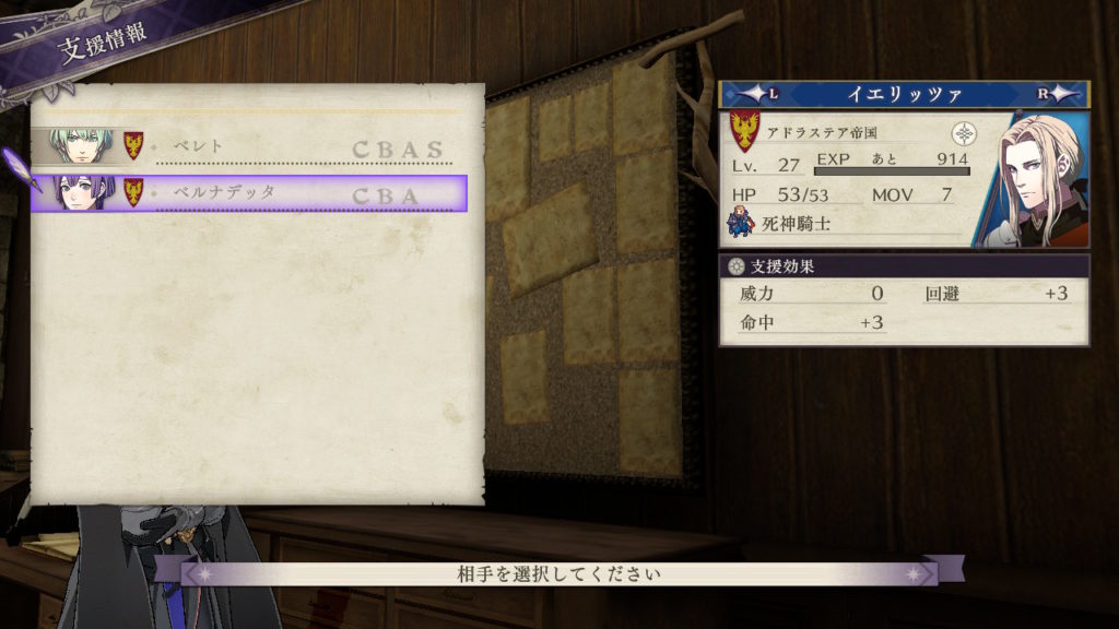 ところでこちらのルート、まさかの次とその次のマップで終わりとなっており……前回の青獅子と比べると少し短い!ゆえに色々とクラスチェンジや支援など間に合わず切なかった。