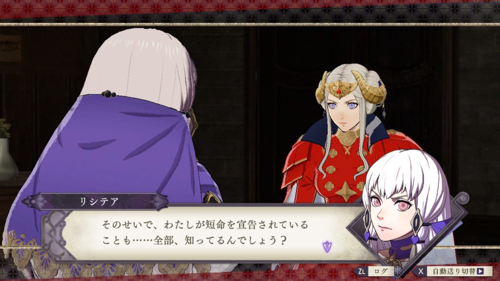 リシテアにはエーデルガルトとリンハルトの支援会話があって、どっちも紋章関係。別ルートでの支援会話は結構キャラの深掘りに大事なのかもなあ。