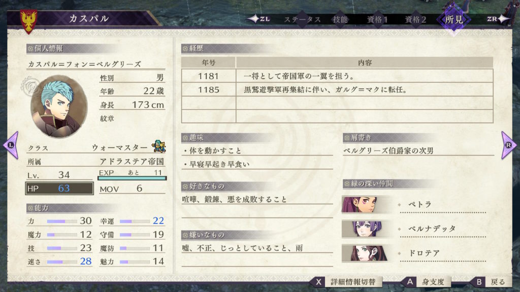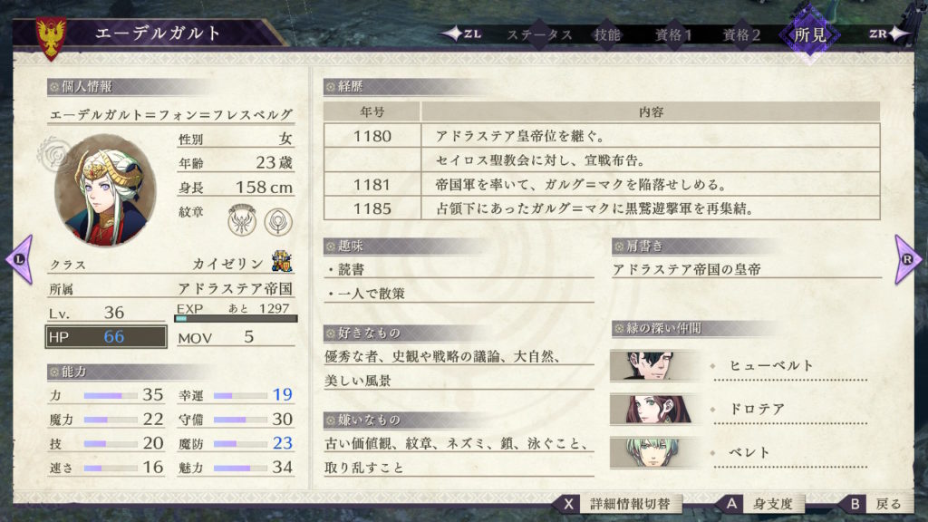 紋章ちゃんと見てなかったから後から確認すると、エーデルガルトも炎の紋章持ってた。なかなかキツい生い立ち。