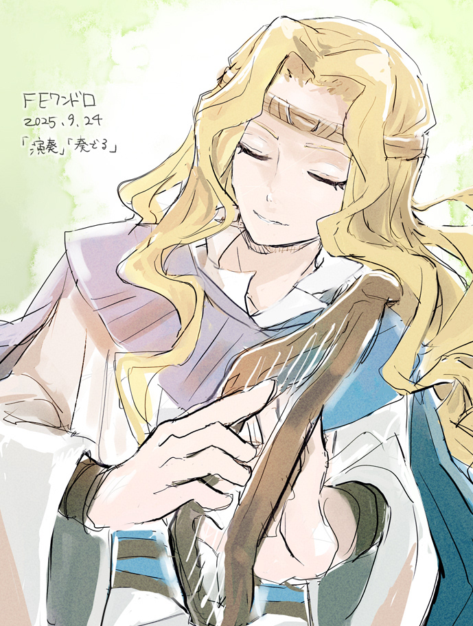 楽器と聴いて他が思い付かなかった、楽器練習しないと即興で描けないな;; 調べてみたけど、小さいハープはライアーハープというものなのかな?
