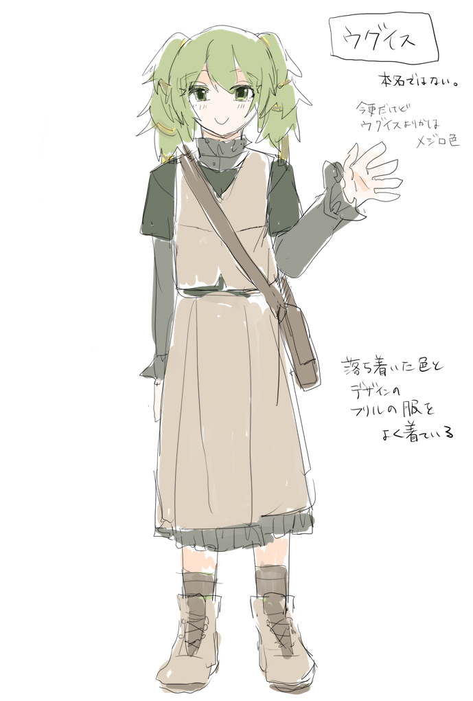 素直で可愛らしい家出少女、あまり過去は語りたくない様子だが二度と家には帰らないとは豪語している。ウグイスは偽名、家出と共に名前を捨てた。 よくクロノの手伝いをしており、物怖じしない。 「えっへん、どうですか?花を植えてみ …