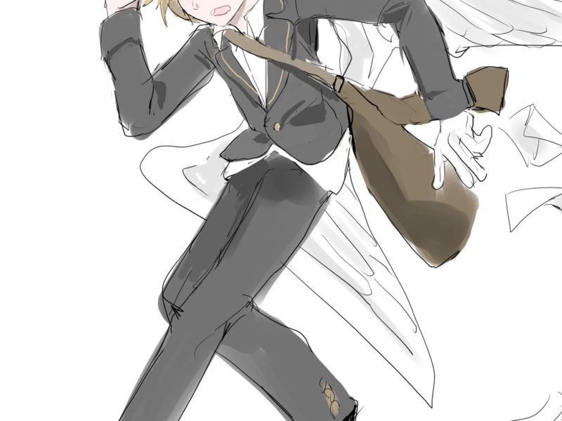 無翼の男性、国立図書館の警備員。全てが適当でふらふらしている。 いかにも調子が良く、その場のノリでなんでも決行してしまう。女の子好きで優しい。 ーーー 「お願いするだけタダだし、会ってみる?あの人結構ノリ良いよ」 「俺っ …