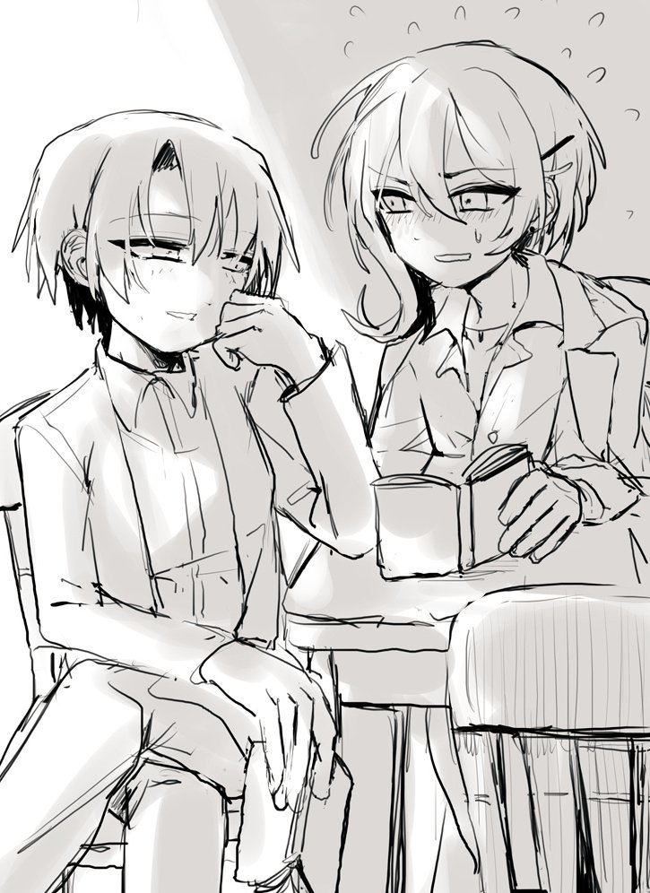説明しよう!これは大学時代の二人だ! ダリア(左)は過去のトラウマ等々から人間不信なのである!特に男が苦手だ!ハインツ(右)はなんとか仲良くなったぞ! それでもって克服しようと頑張ったり頑張らなかったり、です。