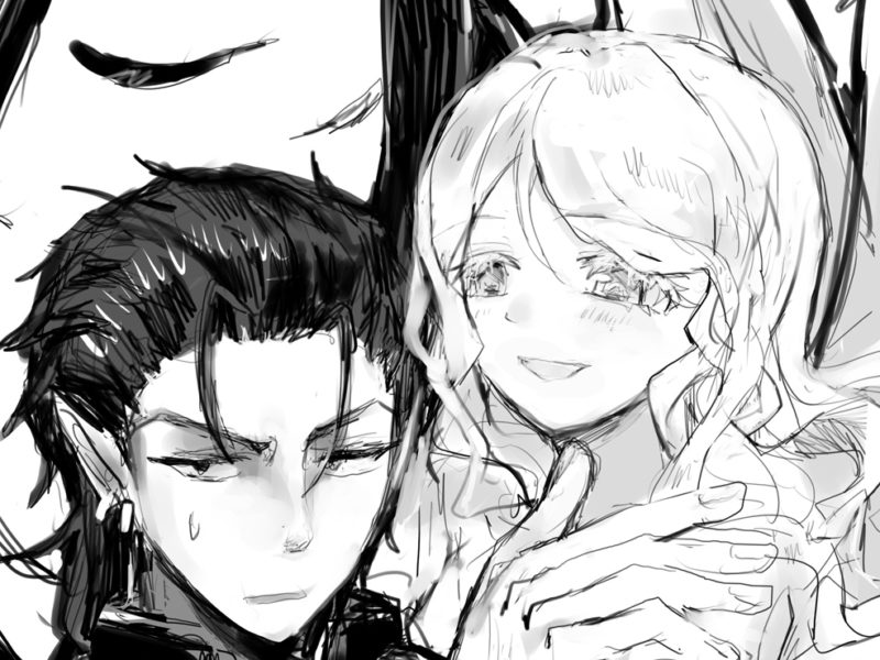 本当はせっかくのモノクロお題なのでかっこいい雰囲気のネサラを描こうとしたのだが、どうしてもリアーネを添えたい想いが… リアーネもう少し大人っぽいのは分かってるんだけど、言動がキュートすぎて手癖でいつも幼く描きすぎてしまう …